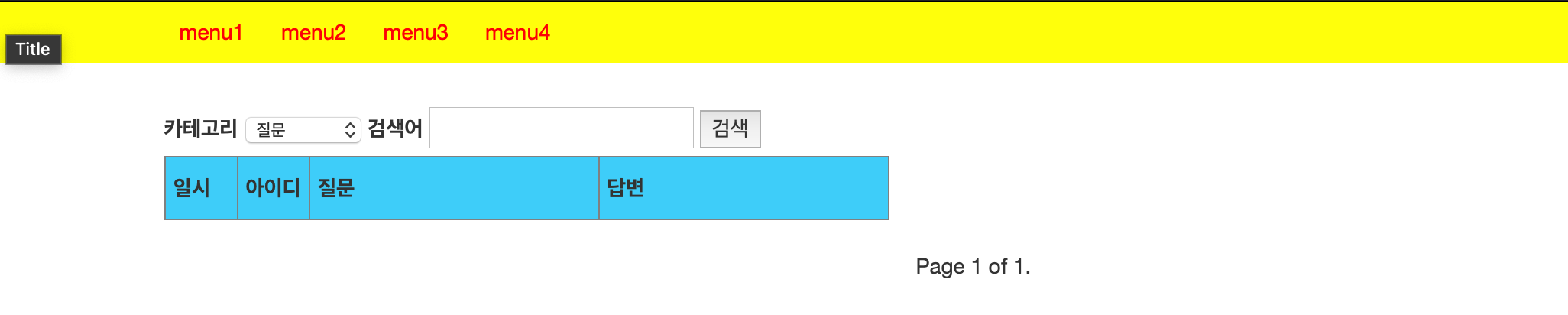 이제 질문 데이터를 조회하고 수정하고 추가하는 기능을 얼추 완성되었다. 이제 또 다른 요구사항인 사용자 로그 조회하면을 만들 차례다. 지금까지 만들던 화면과 다른 화면이기 때문에 화면을 새로 만들어야 하는데, 화면을 이동하려면 메뉴바가 있으면 편할 것 같다. 일단 간단하게 메뉴바를 만들어보자.