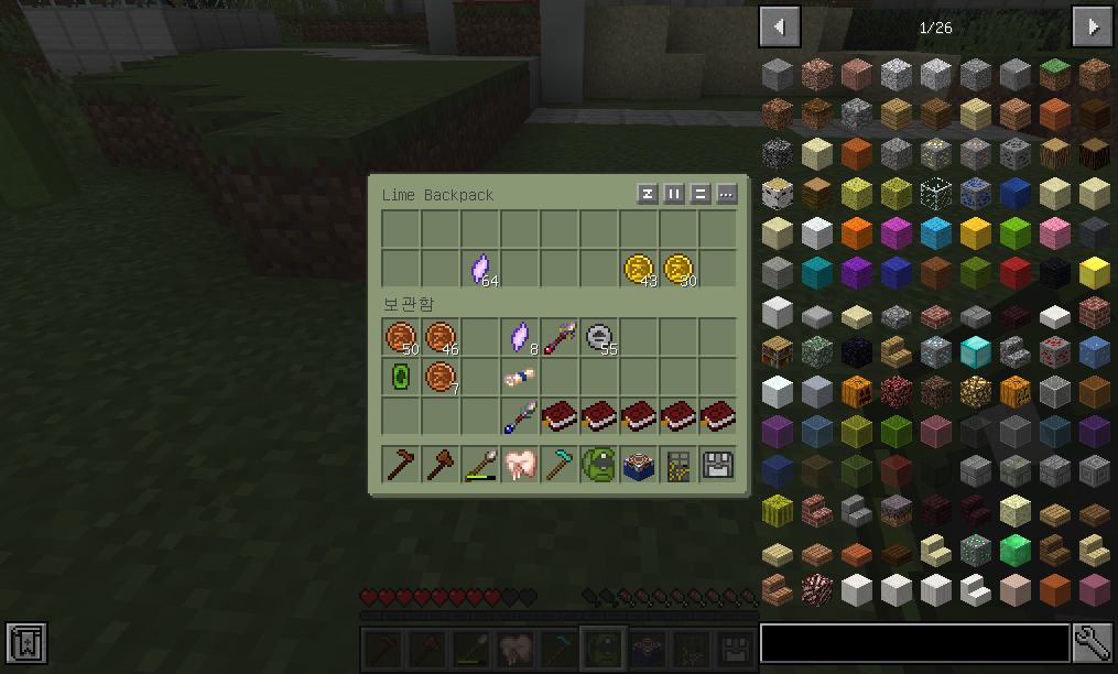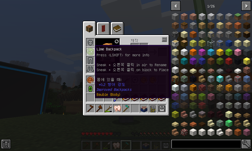 백팩 모드 - https://www.curseforge.com/minecraft/mc-mods/improvedbackpacks.