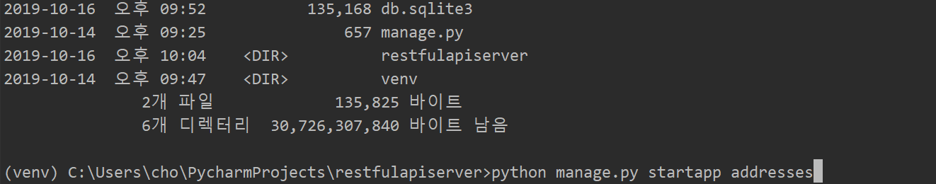 앱 설치는 터미널에서 python manage.py startapp addresses를 입력하시면 됩니다.