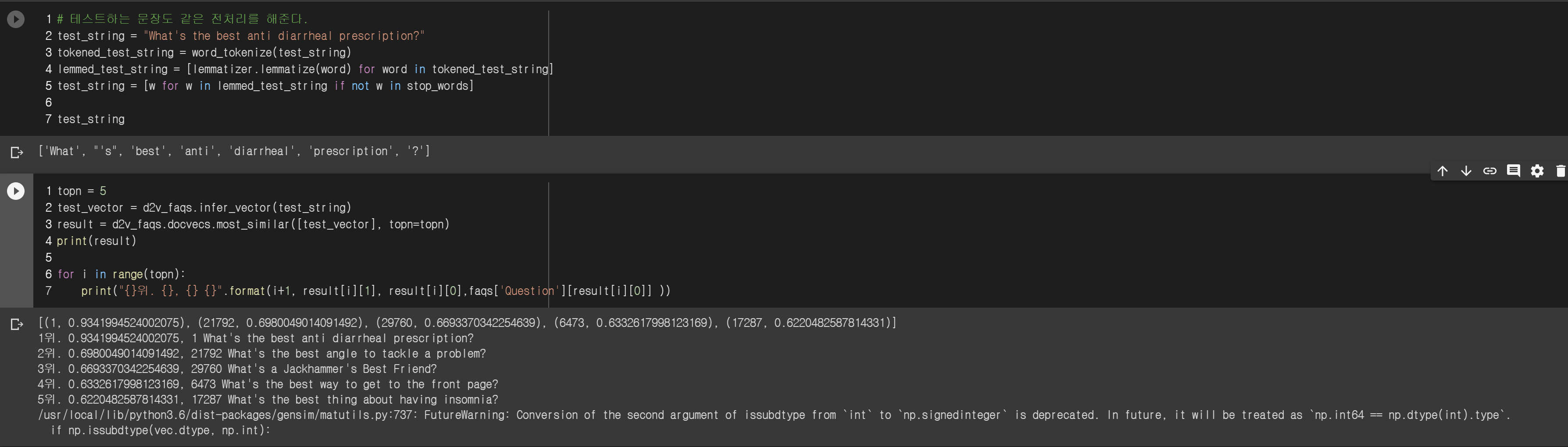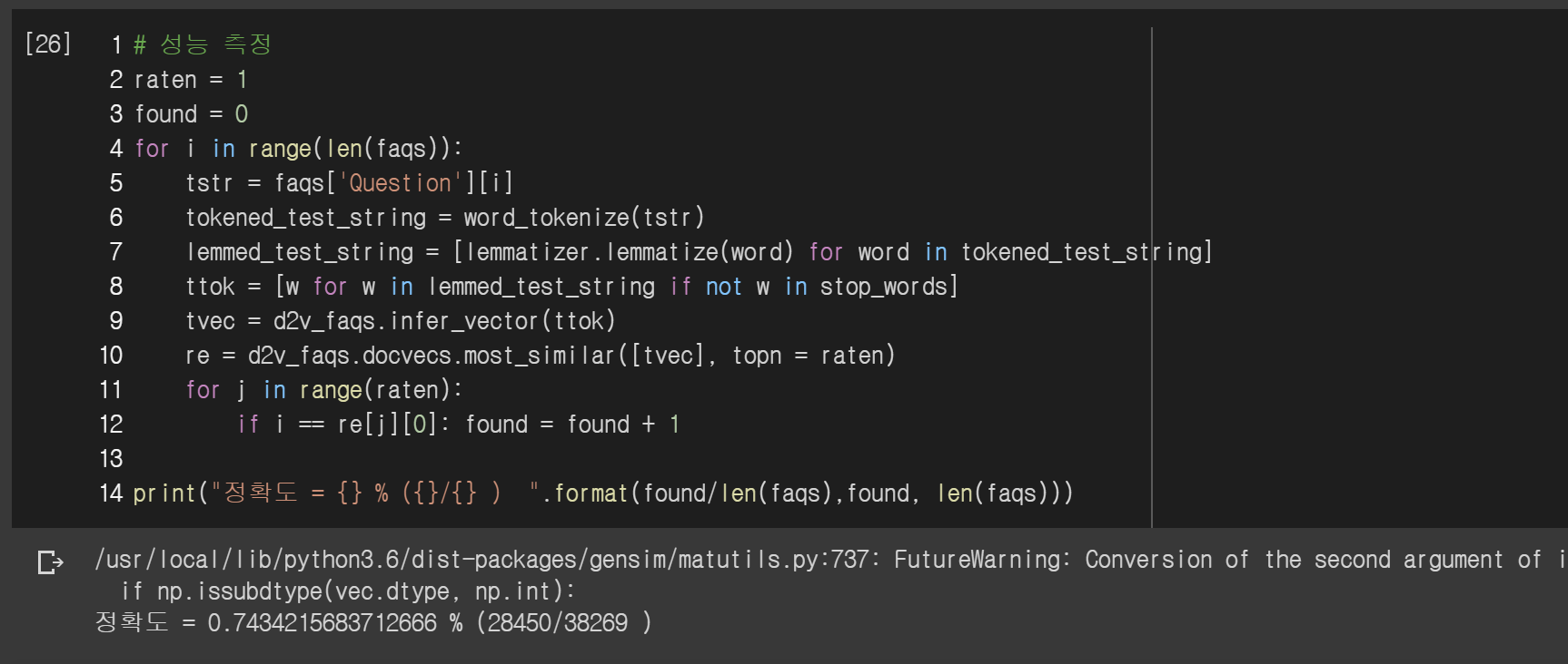 doc2vec 모델을 만들었으면 얼마나 잘 맞추는지 테스트코드를 만들어봅시다.