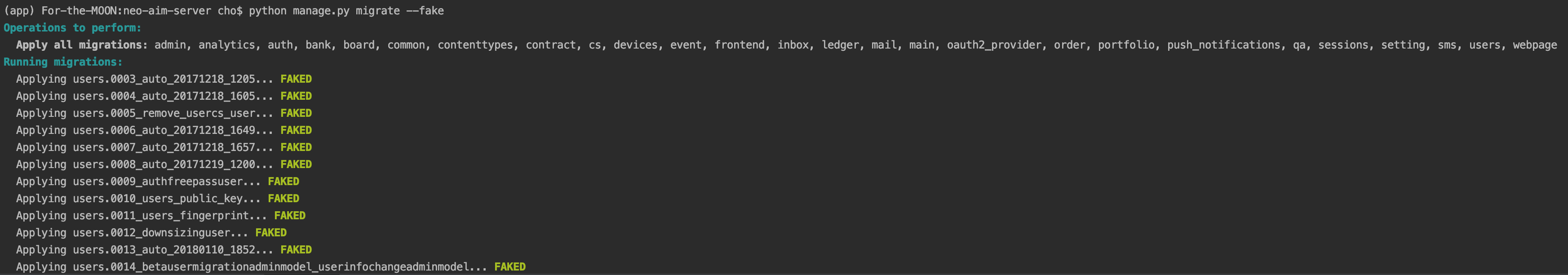 명령어는 간단하다. migrate를 할 때 뒤에 --fake만 붙이면 된다.