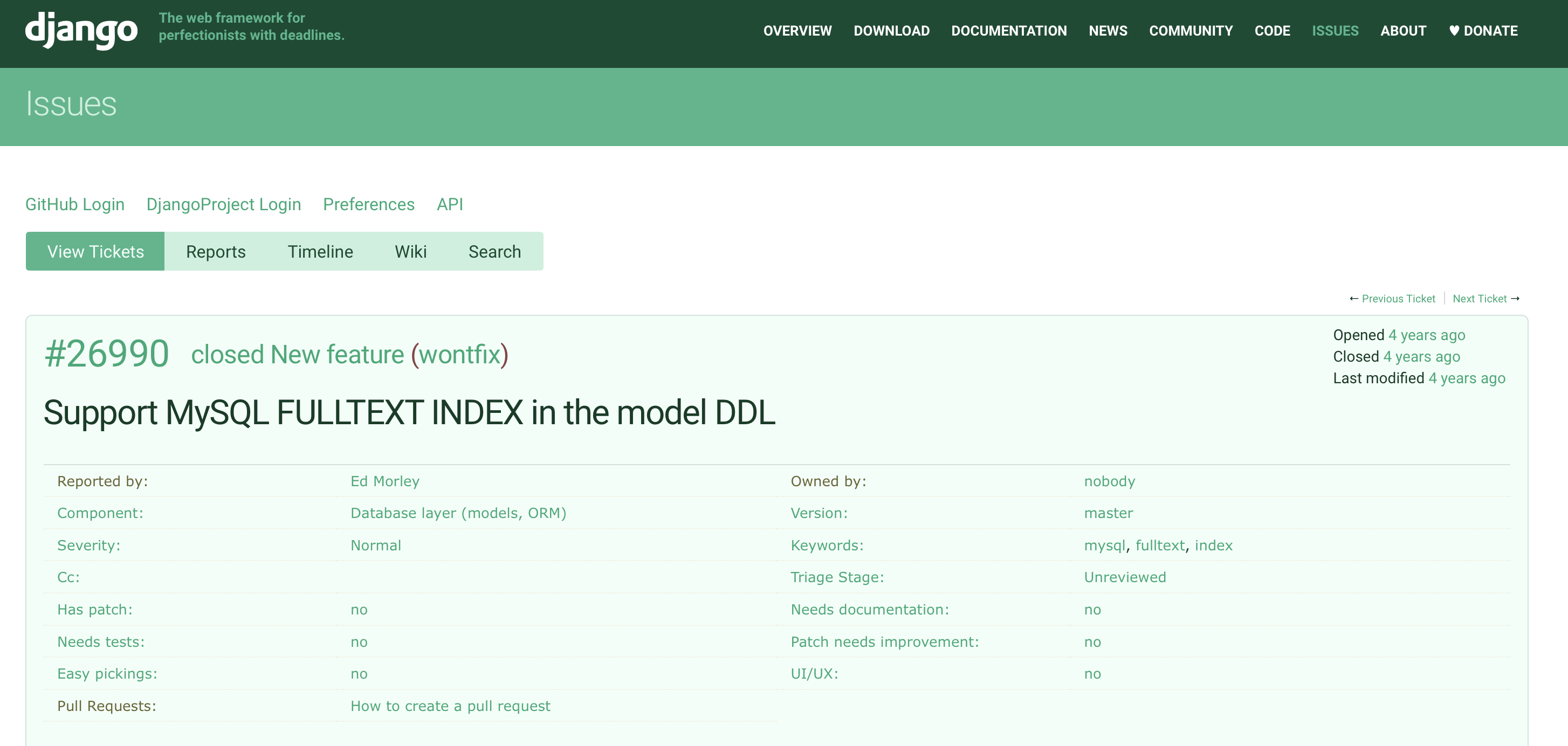 그렇다면 Django에 쿼리셋에서 FULLTEXT INDEX를 사용하는 조건은 어떻게 사용할까?