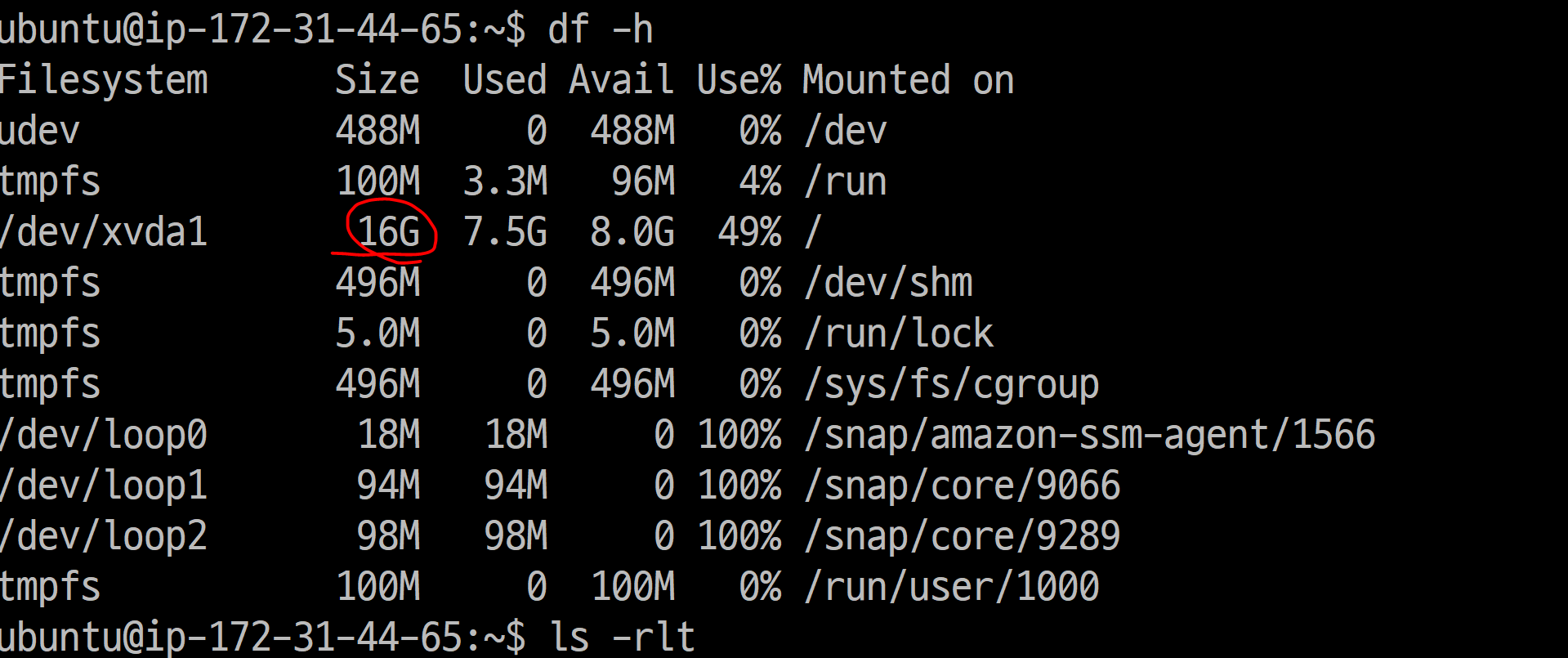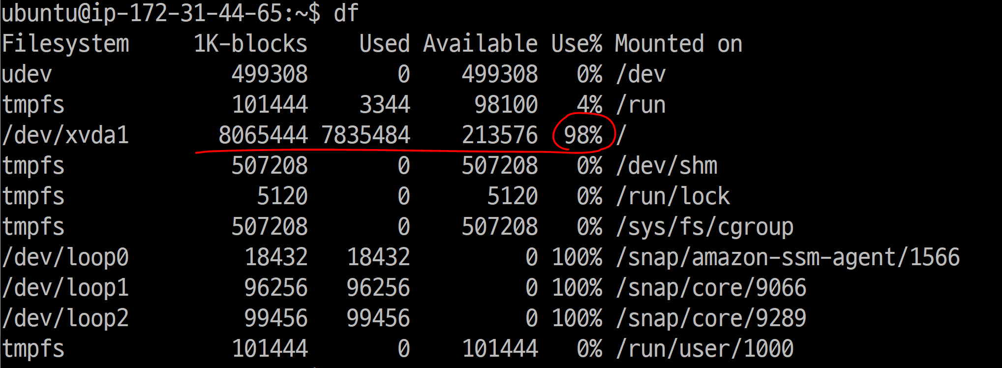 sudo resize2fs /dev/xvda1