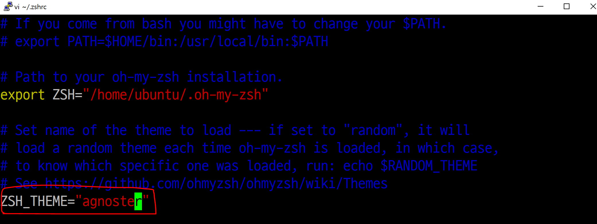 테마를 바꾸기 위해서는 홈에 있는 /.zshrc에 theme 값을 바꿔주면 된다.
