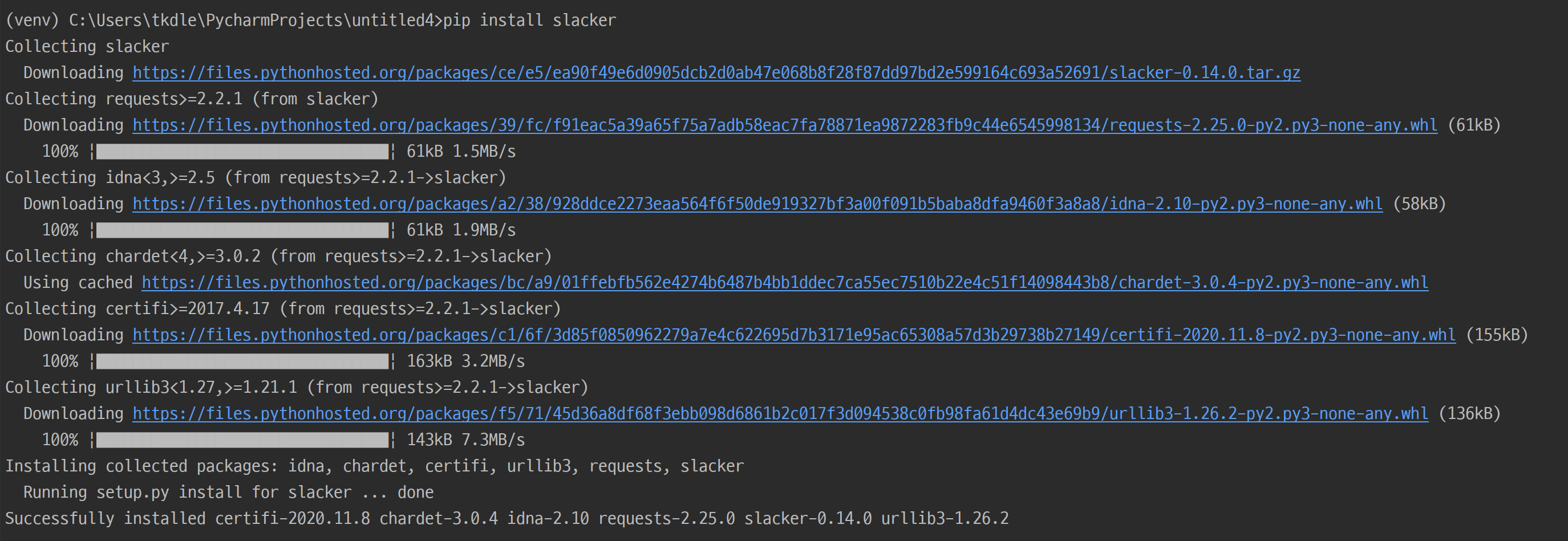 python에서 slack으로 메시지를 보내는 방법은 간단합니다. slacker라는 패키지를 받으면 코드 몇줄로 슬랙으로 메시지를 전달할 수 있습니다. (오픈소스 만세)