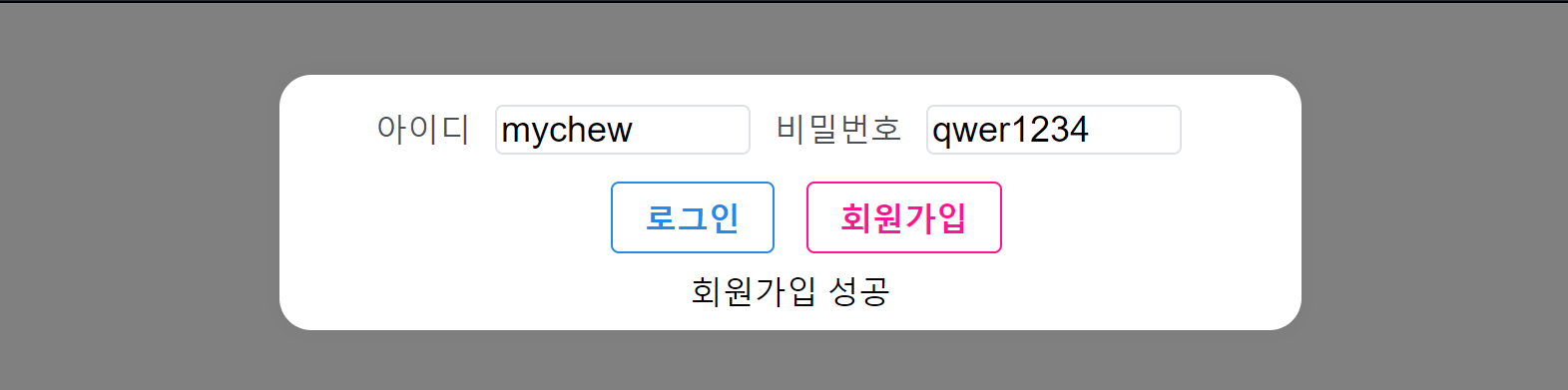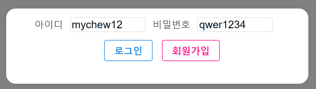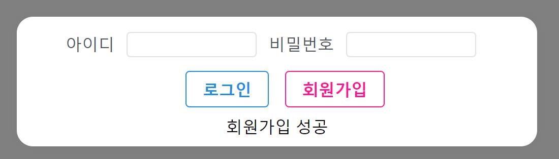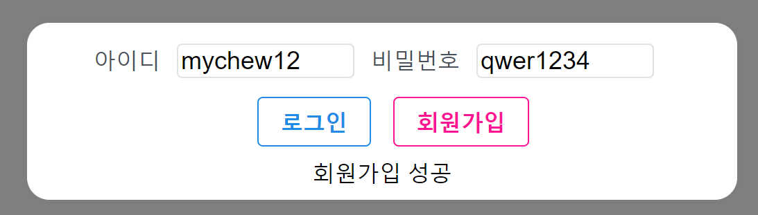 - 아이디와 비밀번호를 입력하고 회원가입 버튼을 누르면 회원가입 API를 호출한다.