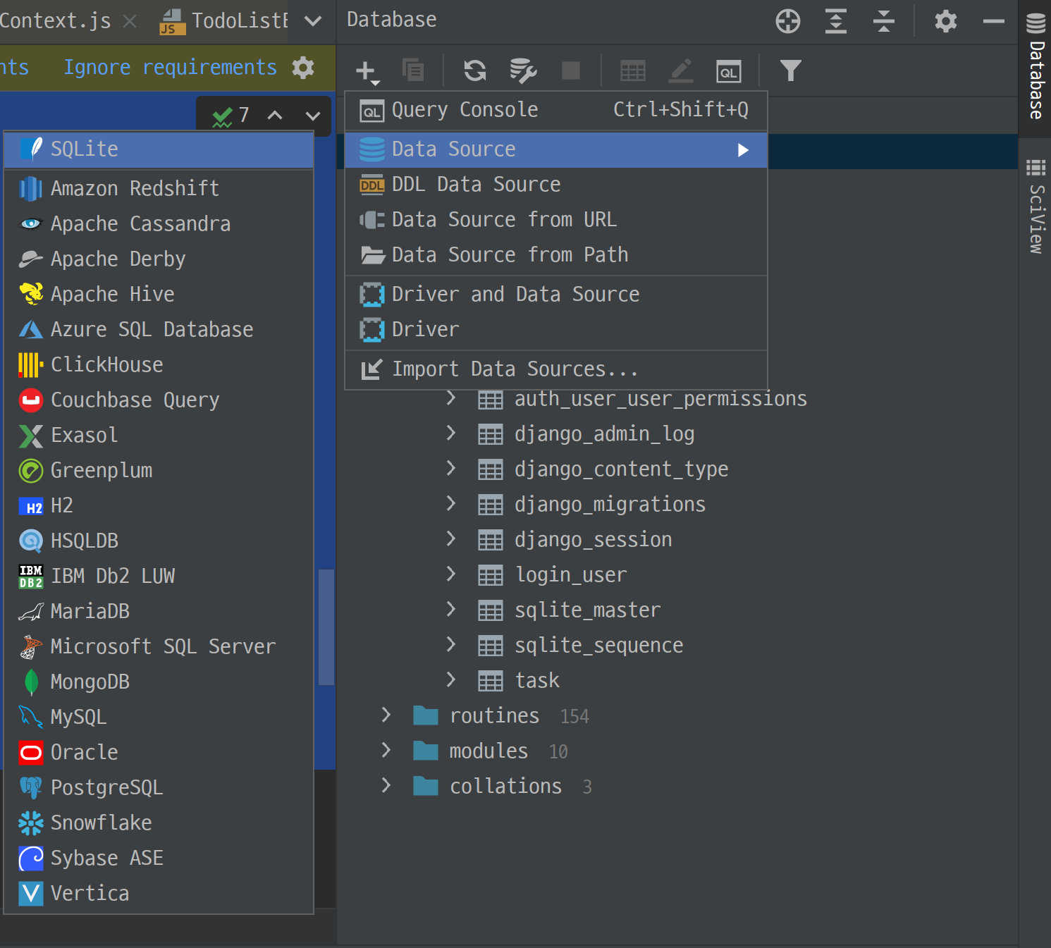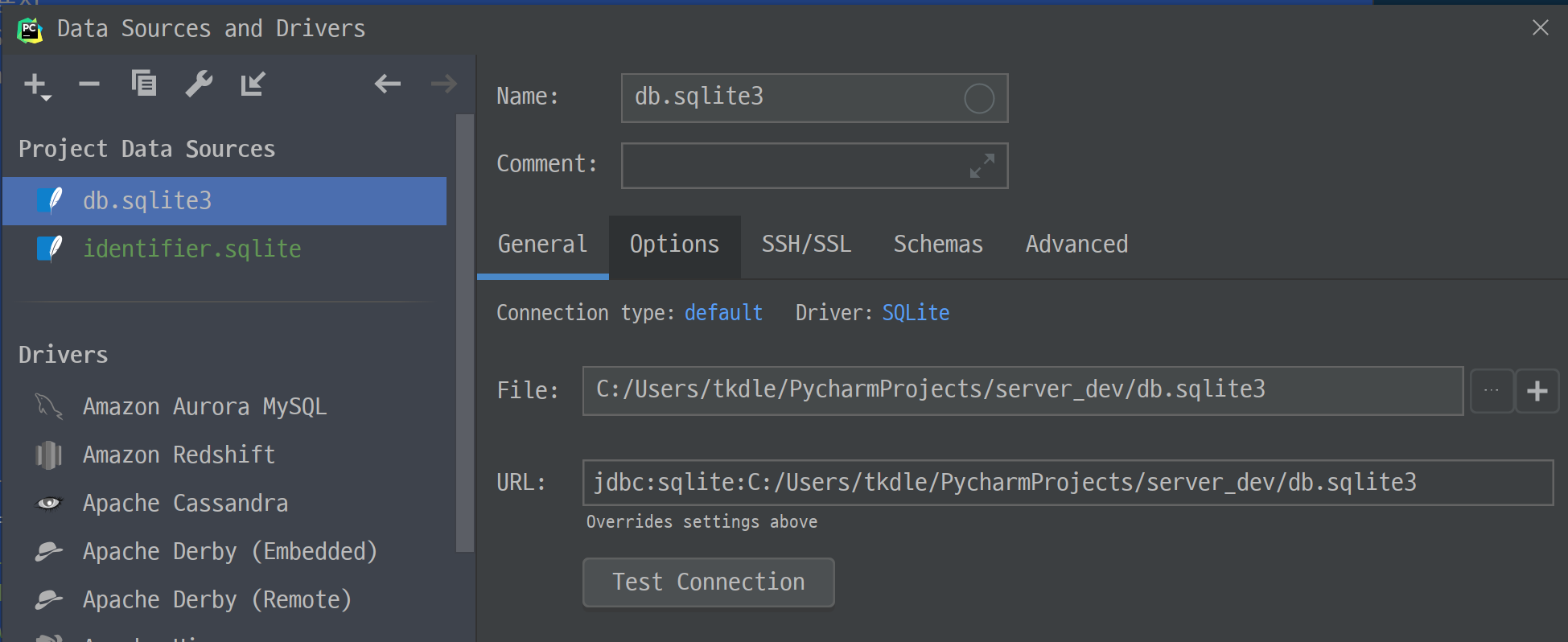 sqlite를 사용할 경우 pycharm에 있는 database tool을 이용해 접속할 수 있습니다.