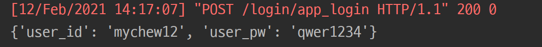 회원가입과 마찬가지로 로그인도 같은 방법으로 일단 들어오는 값을 찍어봅니다.