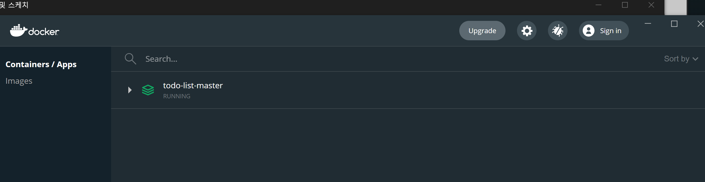 여러분이 윈도우시라면 docker desktop 화면에서 실행 중인 도커를 확인할 수 있습니다.