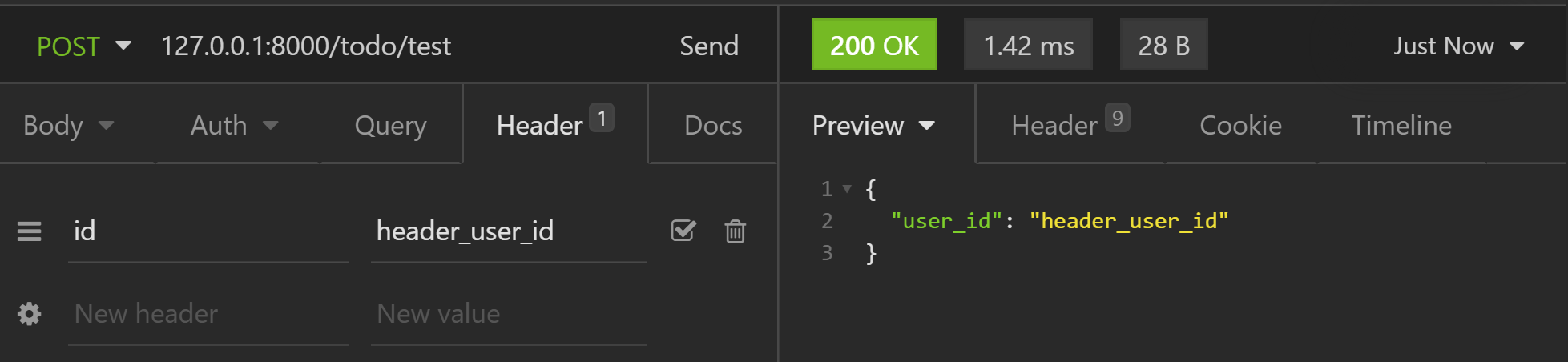 자 이제 헤더에 있는 id값을 받아서 user_id에 세팅하는 것을 만들었으니, 테스트 툴로 요청을 올려봅시다.