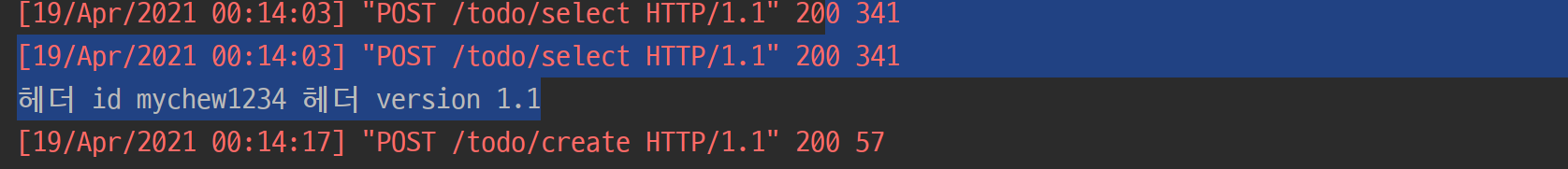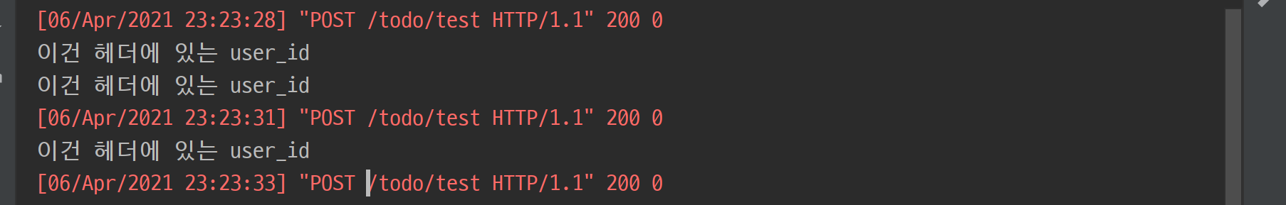 실제로 "실습 4"화면에서 헤더 값이 잘 올라오는지 확인해보려면 print를 넣어보세요.