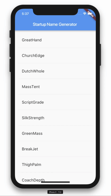 title: Text('Startup Name Generator'),