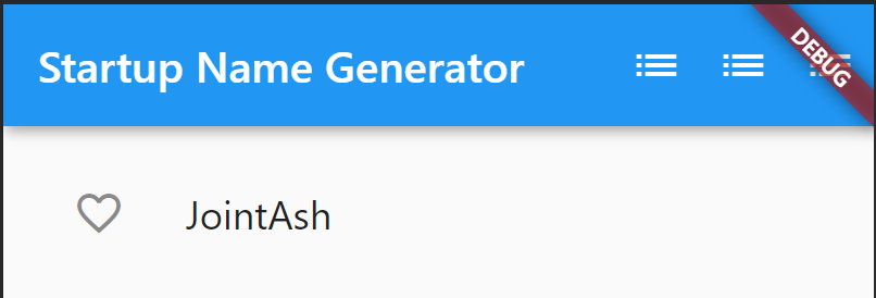 이제 하트를 누른 이름들을 모아서 볼 수 있는 화면을 새로 만든다. flutter에서는 화면이 스택으로 관리된다고 한다. Navigator 스택에 화면을 push 하고 pop 하면서 화면 이동을 하는 것 같다. RandomWordsState 클래스에다가 actions 속성을 추가하면 우리가 앱에서 흔히 볼 수 있는 오른쪽 위 상단바를 만들 수 있다.
