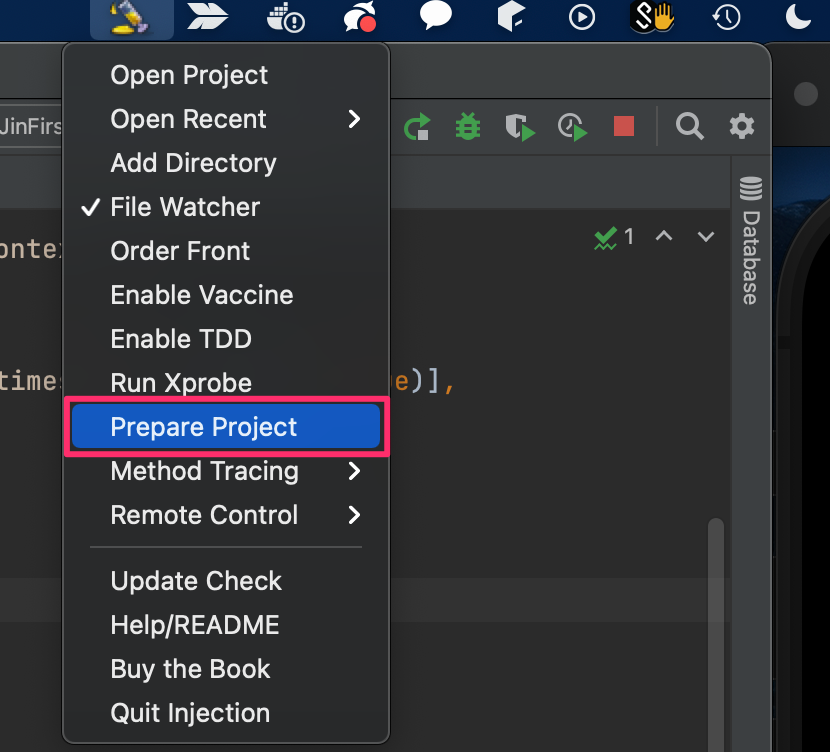앱을 다운로드하고 설치하고 실행하면 상태바에 injectionlll 프로그램이 떠있게 된다.