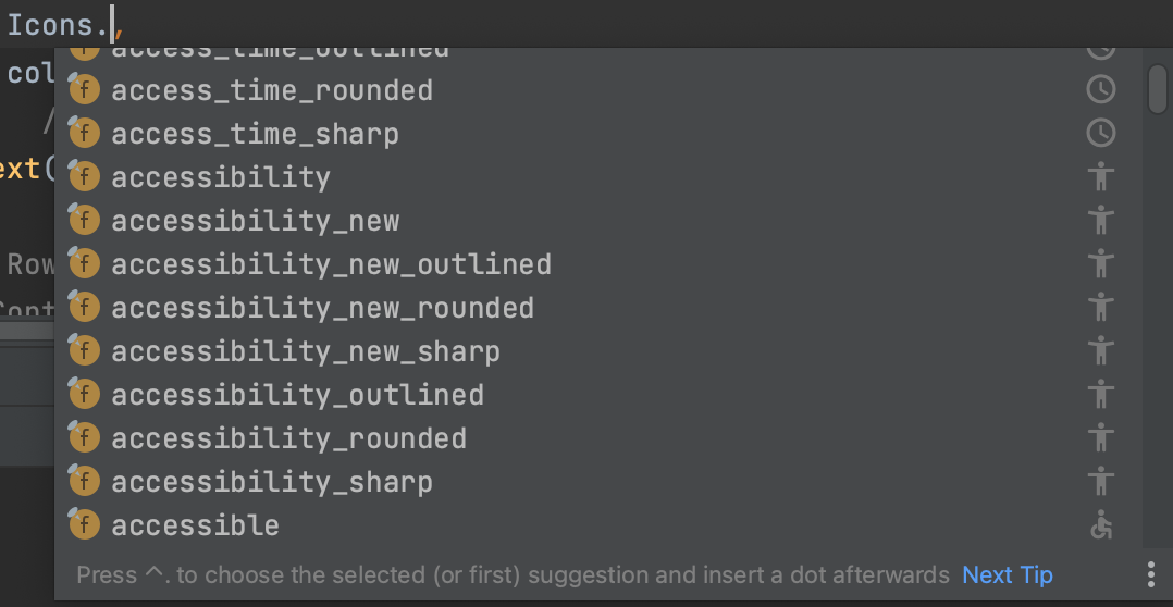 Iconsin flutter. You just write codeicons.{some icon}where you want to display. - there are many sample icons in flutters.
