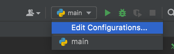 이제 실행을 시켜볼껀데 여기서도 pro와 community가 차이가 있습니다. pro에서는 그냥 실행을 누르면 자동으로 manage.py runserver를 실행하는데 community버전에서는 일일이 설정해줘야 합니다. 왼쪽 위에 main으로 그려져 있는 부분을 누르거나 상단 메뉴에서 run -> edit configurations를 누릅니다.