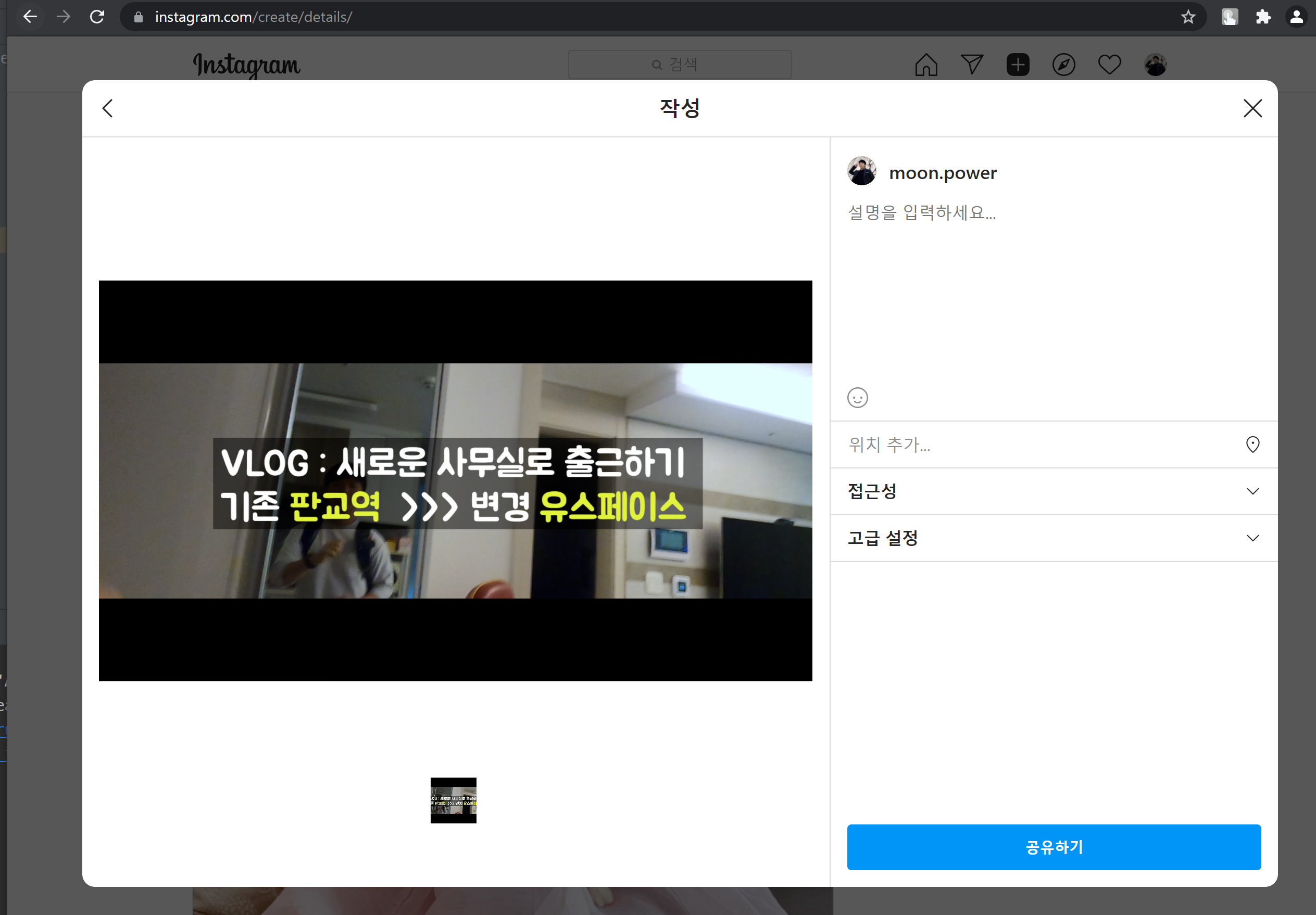 PC에서 피드 생성을 누르면 일단 스크린샷부터 올리네요.