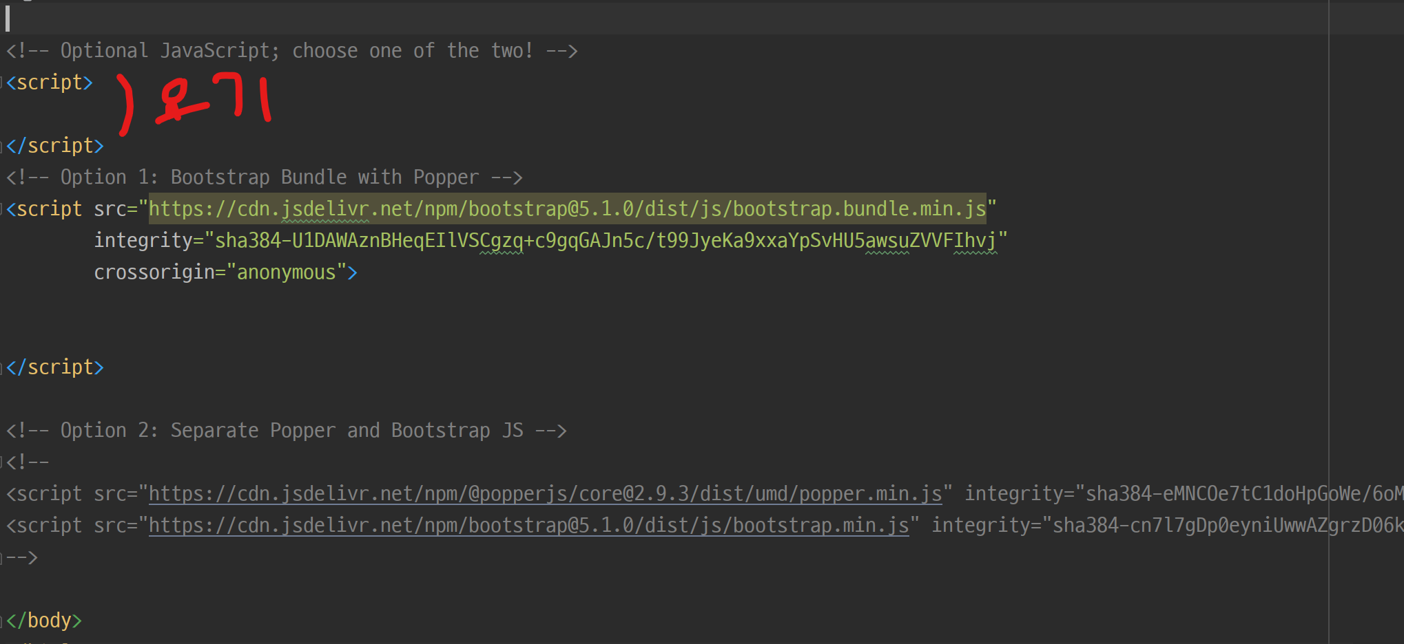 자바스크립트는 body위에 스크립트는 넣는 공간을 만들어서 넣을 예정입니다. 이 스크립트 역시 위치가 그렇게 중요하지 않긴 한데, 보통 제일 하단에 코딩하곤 합니다. ㅎㅎ