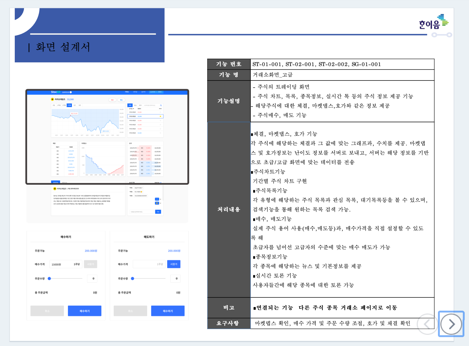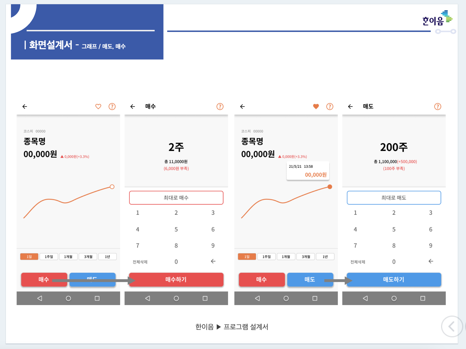 증권 업무부터 시세, 원장, 체결에 대한 로직들을 간단하게 설명하고 구성하면서 차차 앱에 모습 갖춰지는데, 아직 증권 회사 경험도 없는 학생들이 증권업에 대해 공부를 하면서 나와 있는 MTS 비스무리하게 만들어나가는 모습이 참 재밌었습니다. 특히 디자이너가 있는 팀에서는 디자인을 뽑았는데 우리 앱보다 잘 만든 것 같은 너낌도....? 협업도 우리보다 잘하는 거 같은데..?