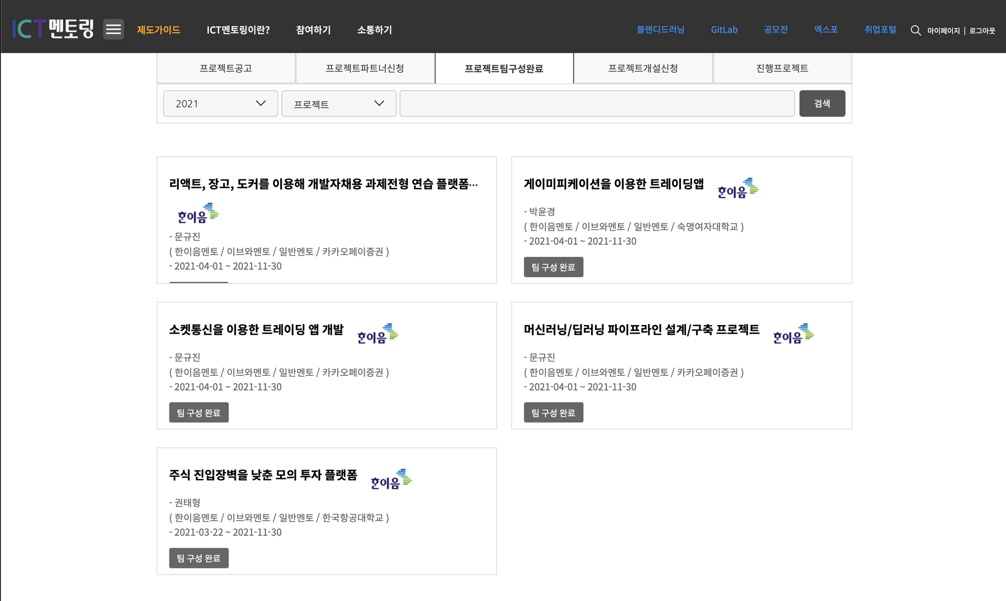 5년째 멘토로 참여 중인 한이음 멘토링 프로그램입니다.
