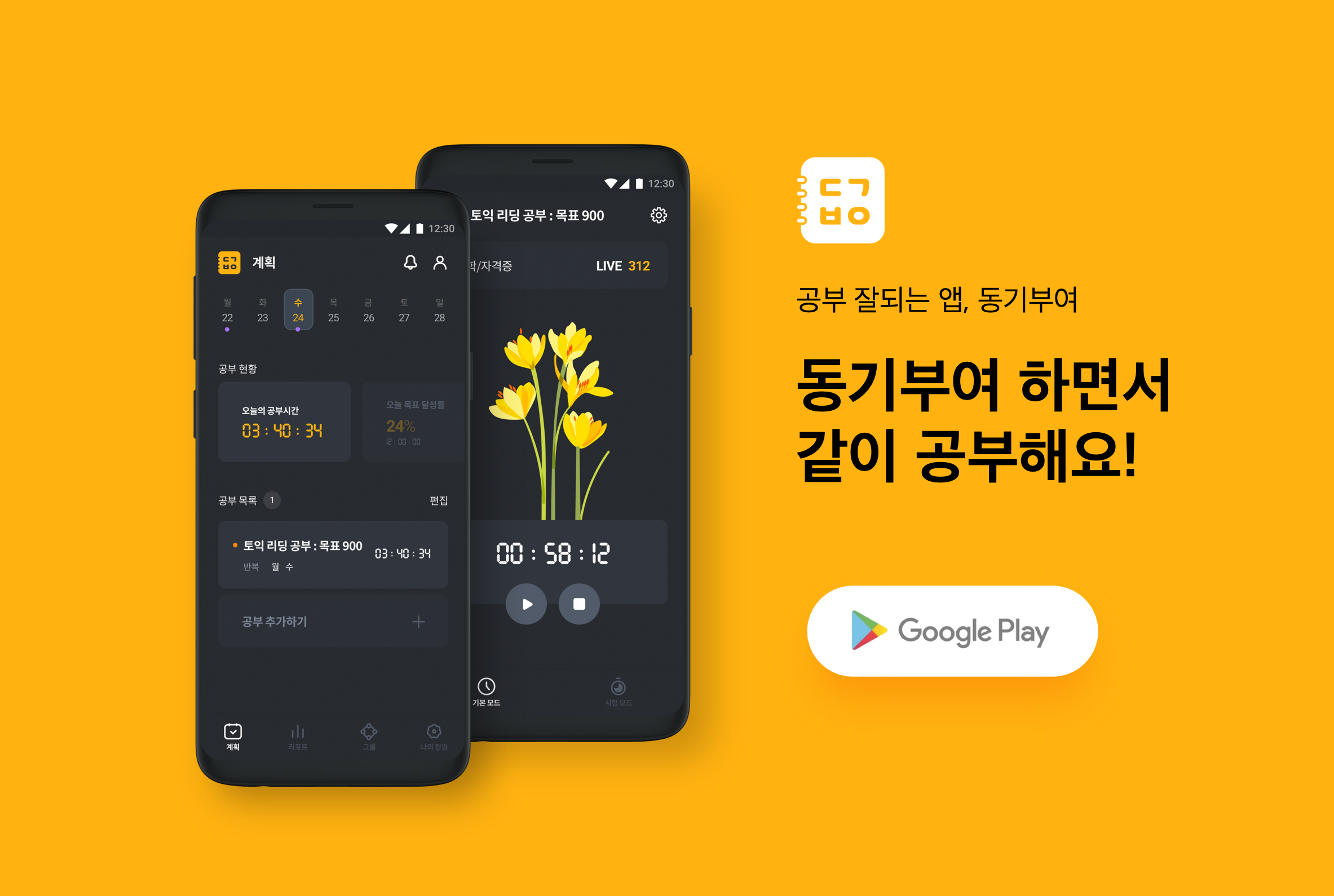 공부를 할수록 내 꽃이 자라는 컨셉의 타이머 앱인데 안드로이드는 2021년 3월에 런칭했고 아이폰은 2021년 11월에 런칭했습니다. 별다른 수익모델이 없이 시작했는데 연말에 구글 플레이스토어에서 상도 받았어요!!