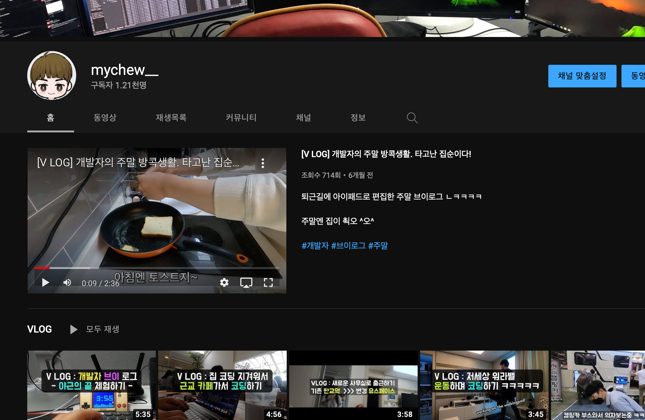 블로그와 연계되어 유튜브 채널도 만들었는데, 2021년 1월에 구독자가 300명? 정도 있었는데 지금은 1300명이 되었습니다!!!