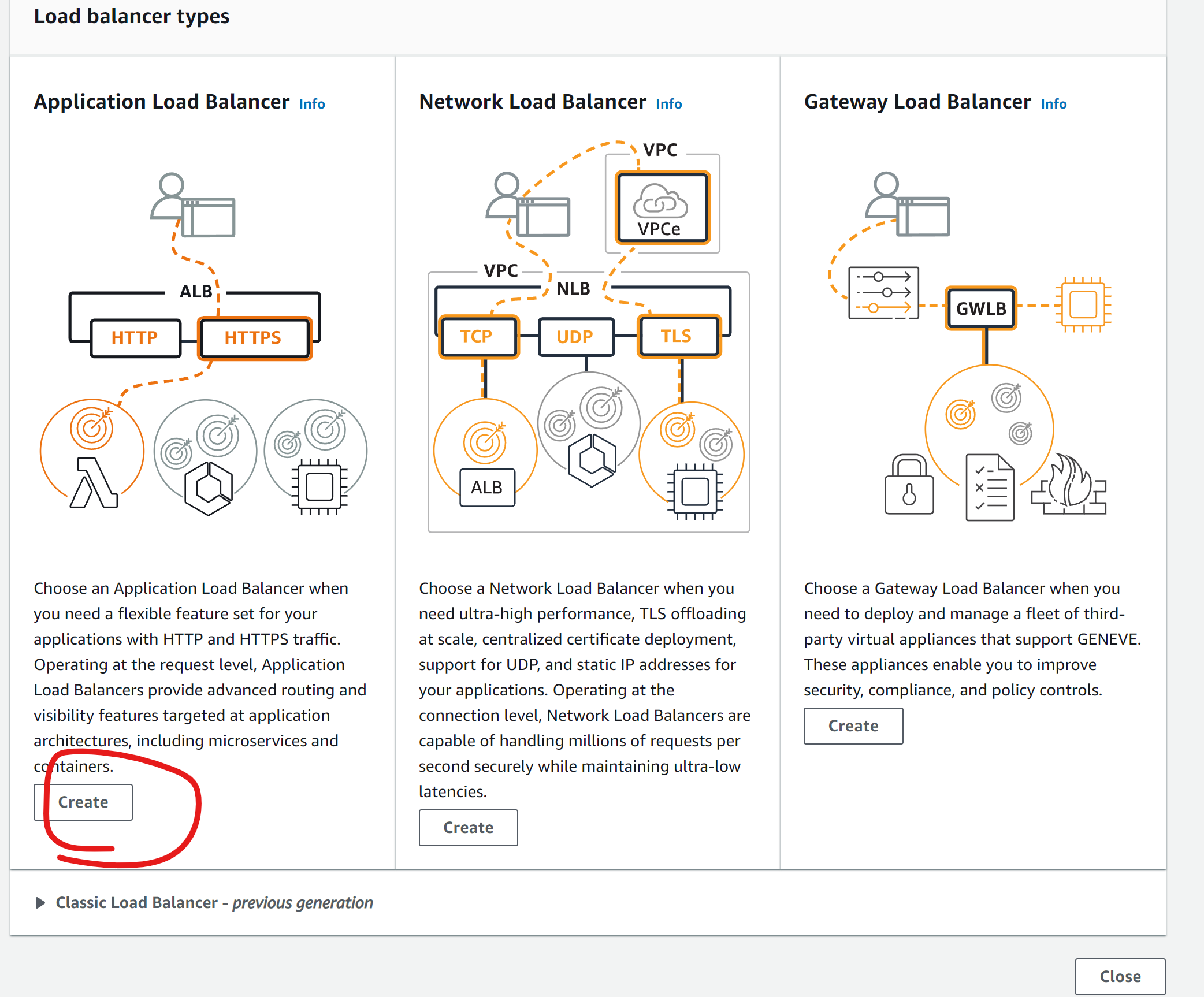 처음 누르면 어떤 LB를 만들 건지 묻습니다. 우리는 ALB를 만듭니다.