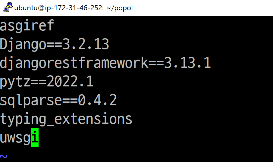 장고에 requirements.txt에서 uwsgi를 추가합니다. 나중에 docker를 만들면 자동으로 requirements.txt를 보고 패키지를 설치할 텐데, 여기에 uwsgi가 있어야 설치가 됩니다.