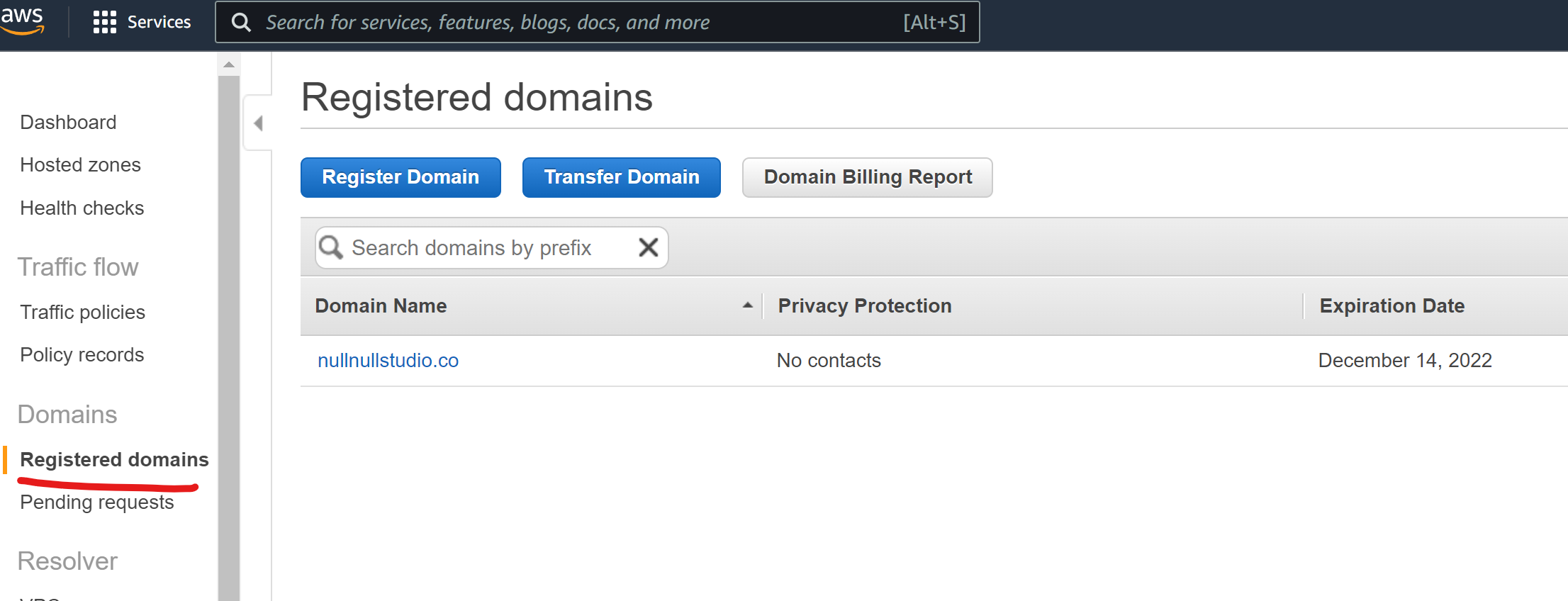 저는 이미 도메인이 있기 때문에 하나가 나오고 있습니다. 새로 만들려면 Register Domain을 누르면 됩니다.