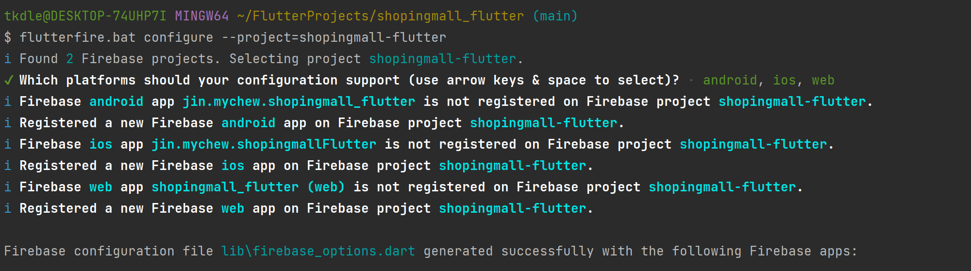 그래서 flutterfire.bat 하니까 됩니다 ㅋㅋㅋ