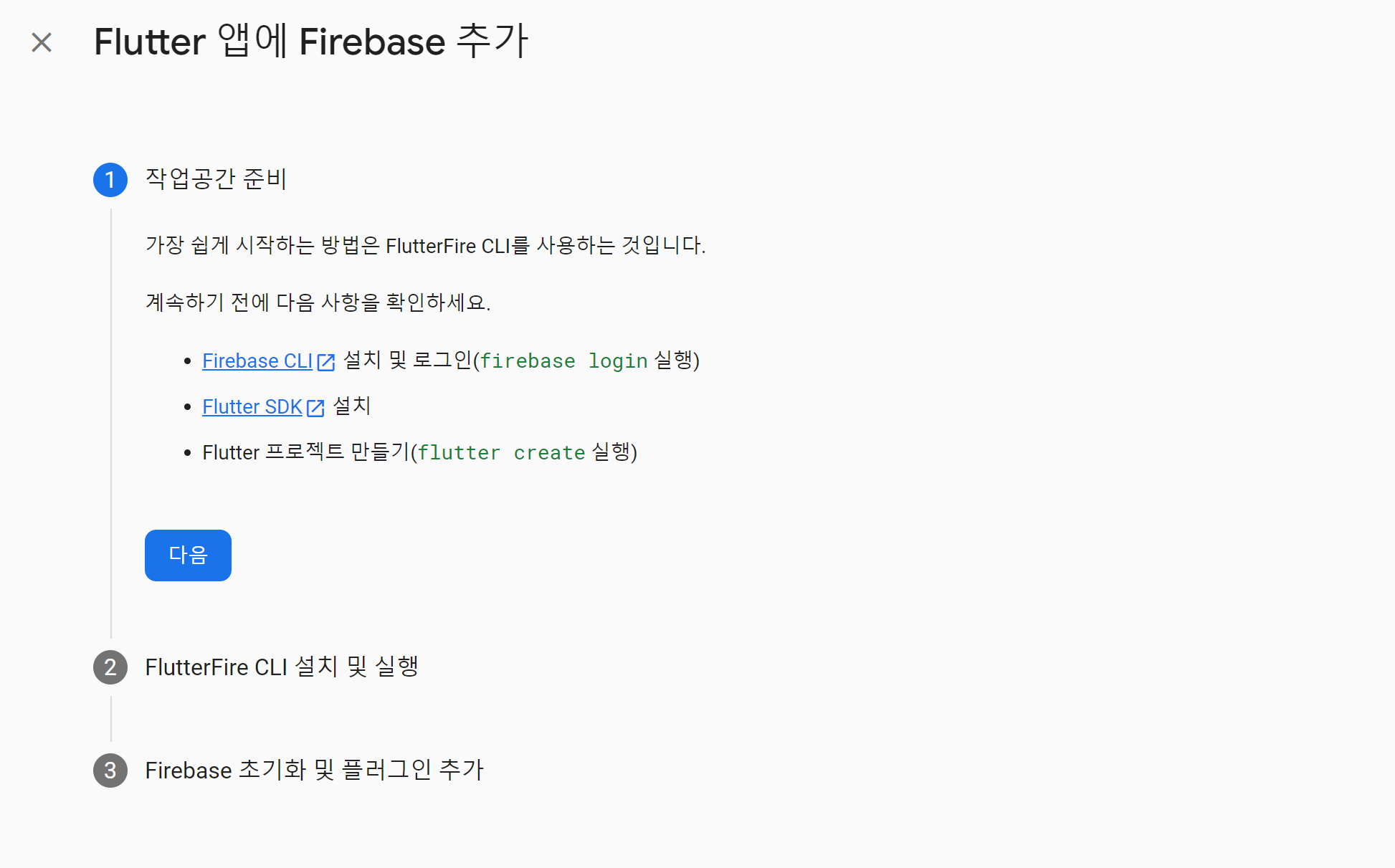 자 이제 CLI는 설치했고, SDK를 설치하면 되는데, 이건 플러터를 지금 개발하고 있다면 당연히 설치되어 있을 겁니다 ㅎㅎ