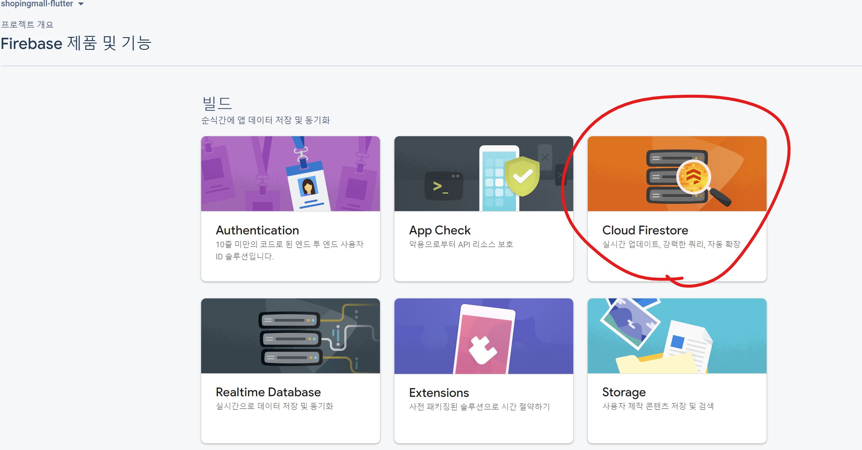 일단 상품 데이터가 필요하기 때문에 데이터베이스가 있어야 합니다. 파이어 베이스에서 제공하는 파이어 스토어를 사용해서 데이터베이스를 만들어보겠습니다.