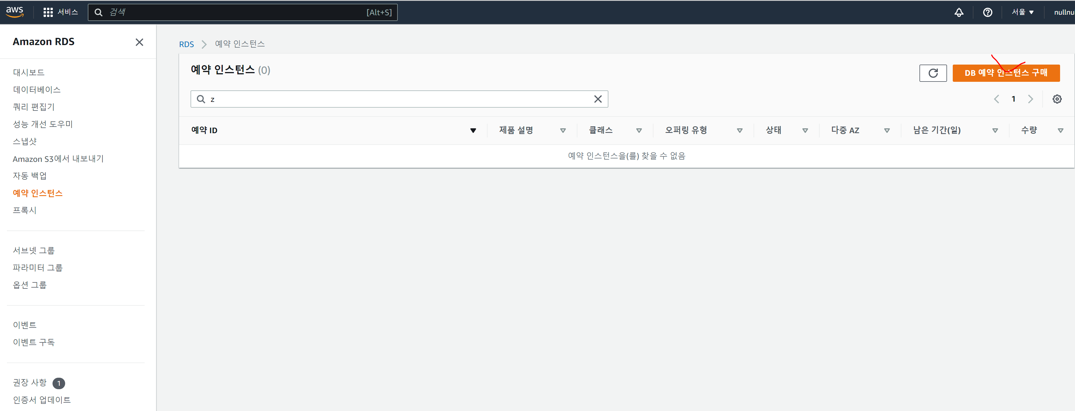 구글링해보니 생각보다 옛날 문서들이 나오거나, AWS공식 문서들이 나오는데 번역이 이상해서 그런지 이해하기 쉽지 않습니다. 그냥 원문으로 보는 게 더 나을 정도.. 하지만 한번 해보면 정말 쉬운데요, 일단 예약 인스턴스를 사용하고 싶은 AWS 서비스 콘솔 페이지로 이동합니다.