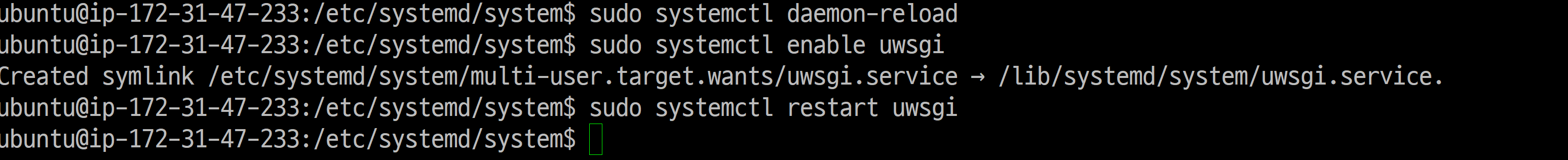 sudo systemctl eanable uwsgi