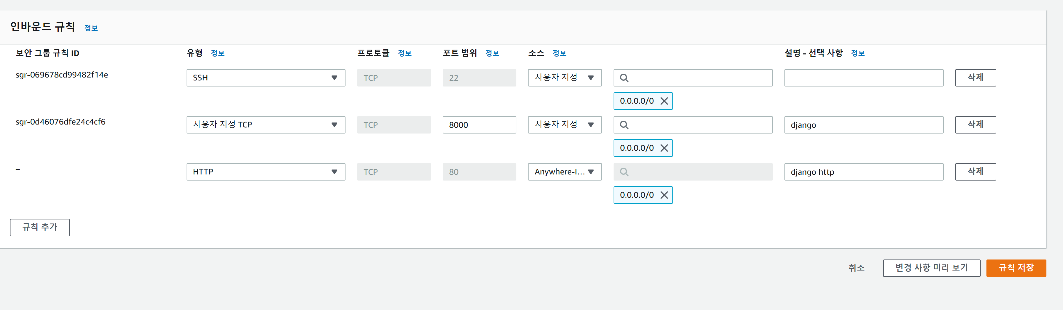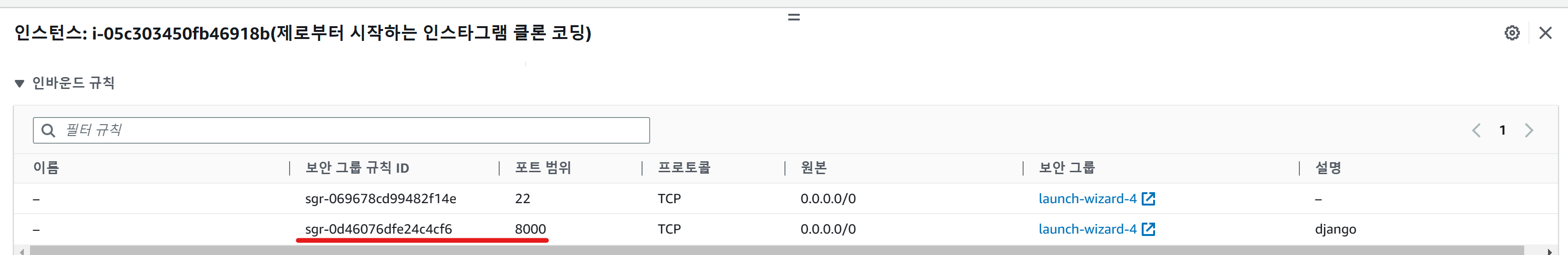 역시나 8000 포트만 뚫려있네요. 80 포트도 추가해 줍시다.