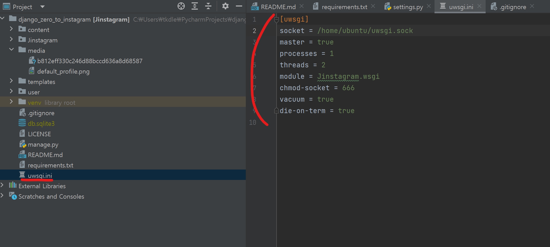 chdir = /home/ubuntu/django_zero_to_instagram_devops