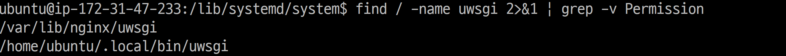 find / -name uwsgi 2>&1 | grep -v Permission