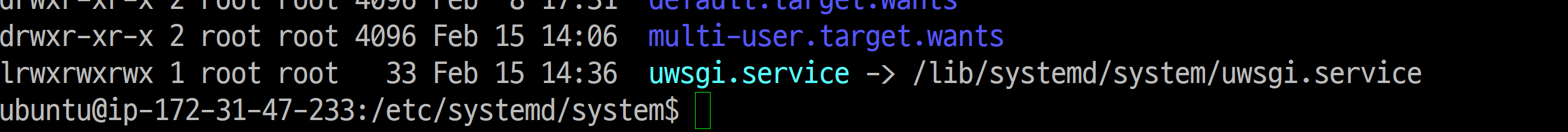 sudo ln -s /lib/systemd/system/uwsgi.service uwsgi.service