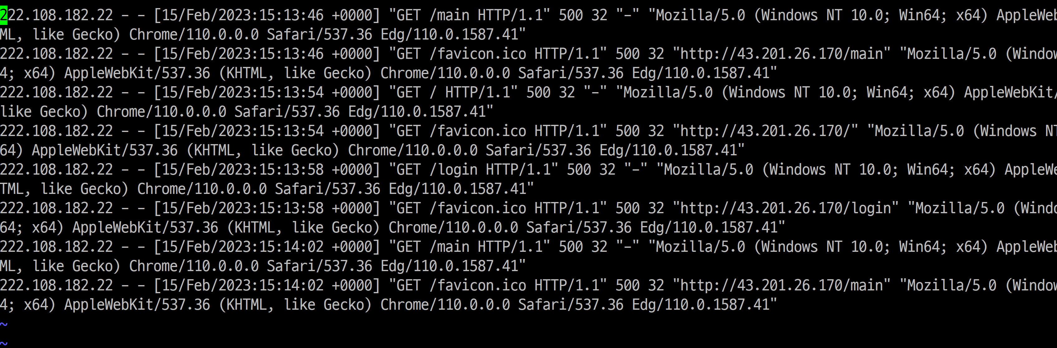 보통 에러가 나면 error.log가 생기는데 안생 긴 거 보니 nginx 쪽 오류는 아닌 것처럼 보이네요. 일단 access.log를 봅니다.