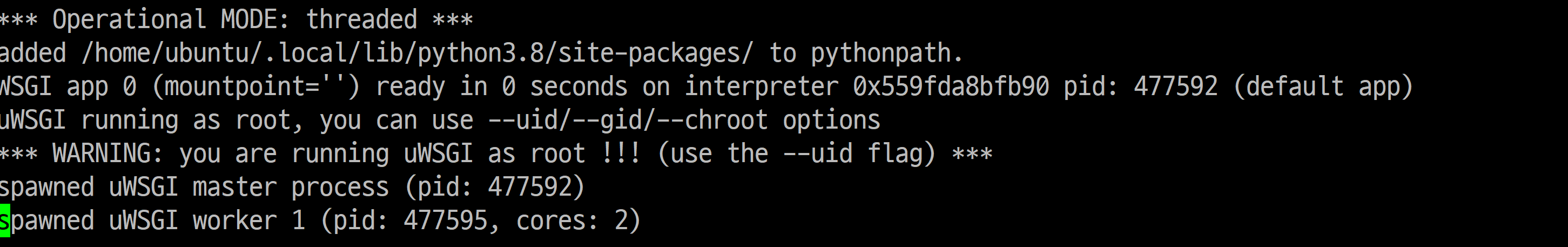 설치가 완료되었으면 uwsgi를 입력해 봅니다.