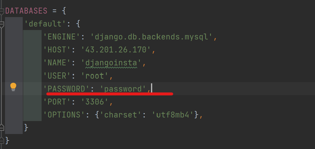 'PASSWORD': os.environ.get('MYSQL_PASSWORD'),