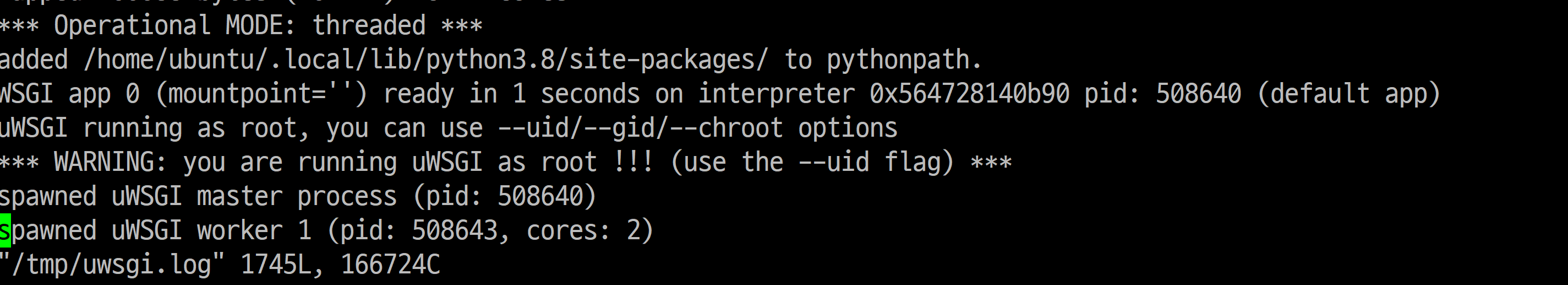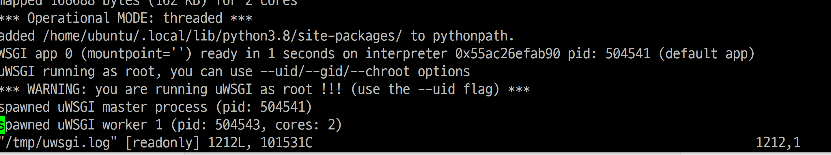 그리고 /tmp/uwsgi.ini 로그를 한번 확인해 봅시다.