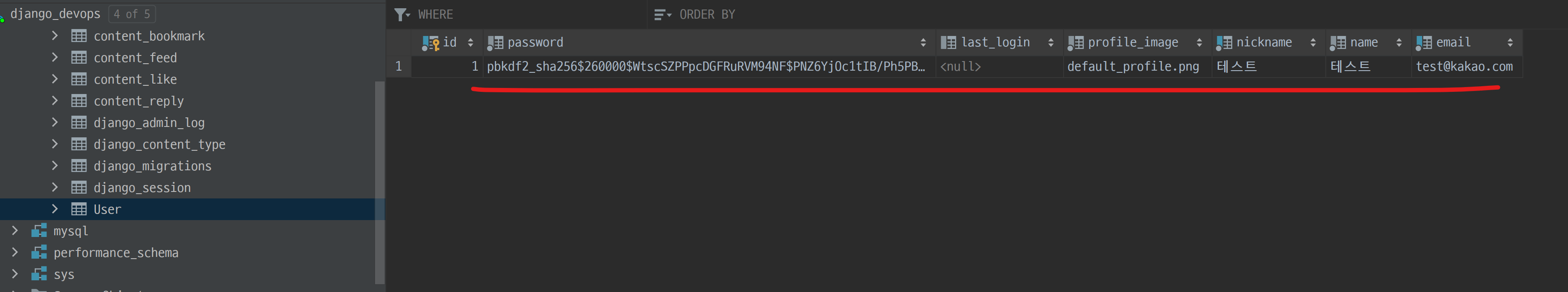 제대로 적용이 되었으면 User테이블에 데이터가 한 건 생긴 것을 확인할 수 있습니다~!!! 구우우웃~!!!