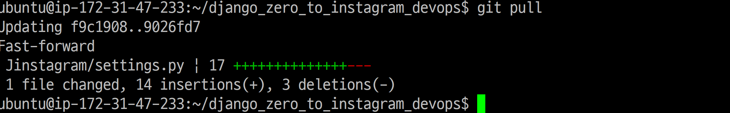 이제 수정한 settings.py를 서버에도 적용해 봅시다. github에 push 하고 서버에서 pull~!