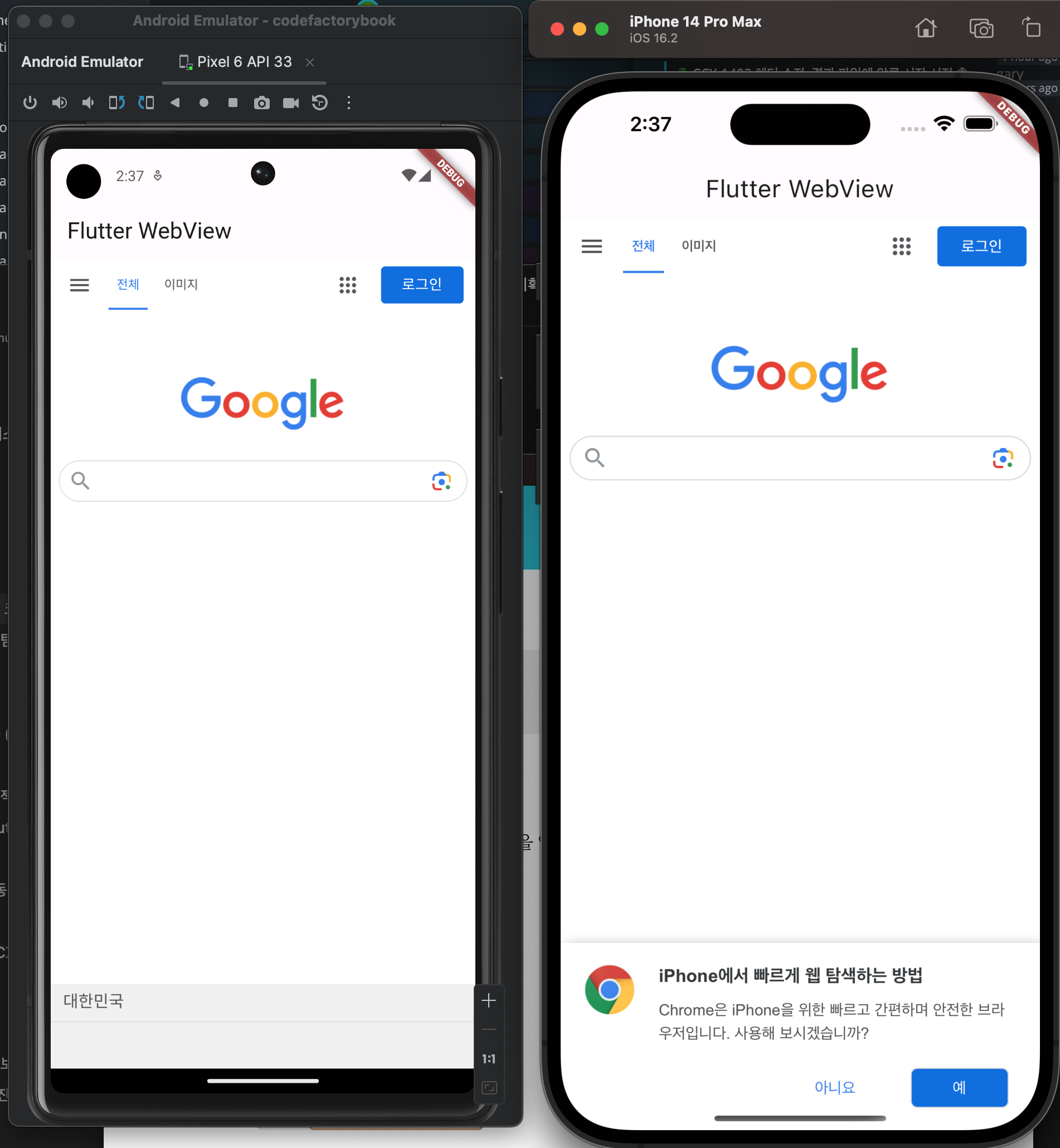 웹뷰는 거의 화면은 다 차지하고 있으니 배경색은 좀 의미가 없는듯... ㅋㅋ