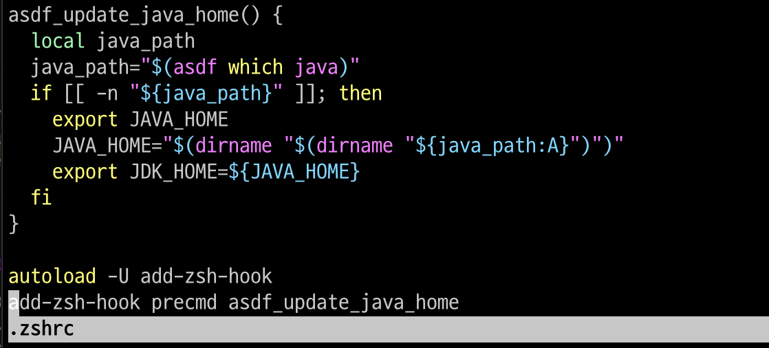 나는 zsh이 설치되어있기 때문에 set-java-home.zsh에 있는 내용을 복사해서 ~/.zshrc에 붙여 넣기 해주었다.