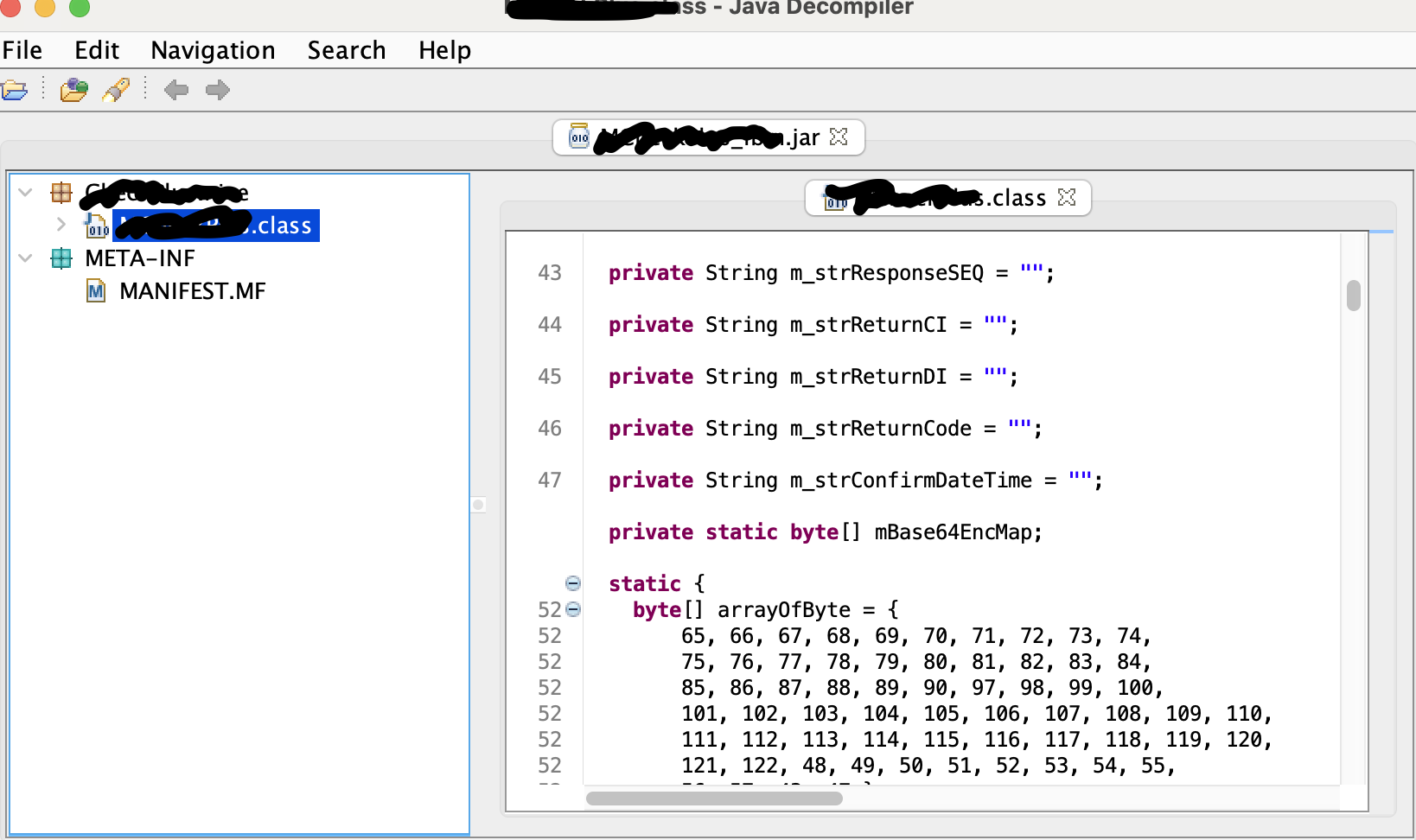 물론, 요즘엔 난독화기능을 사용해서 디컴파일로 코드 확인이 불가능한 jar도 많아 상세한 코드까지는 파악이 불가능하다. 다행히 내가 하려고 한느건 패키지명이나 클래스명정도는 확인이 가능했다.