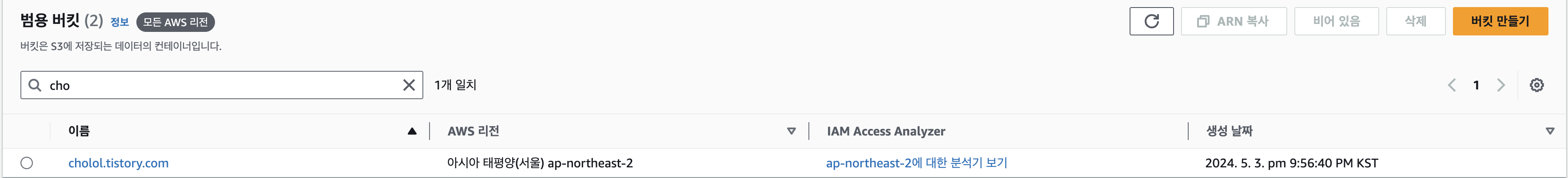 'Buckets': [{'Name': 'cholol.tistory.com',