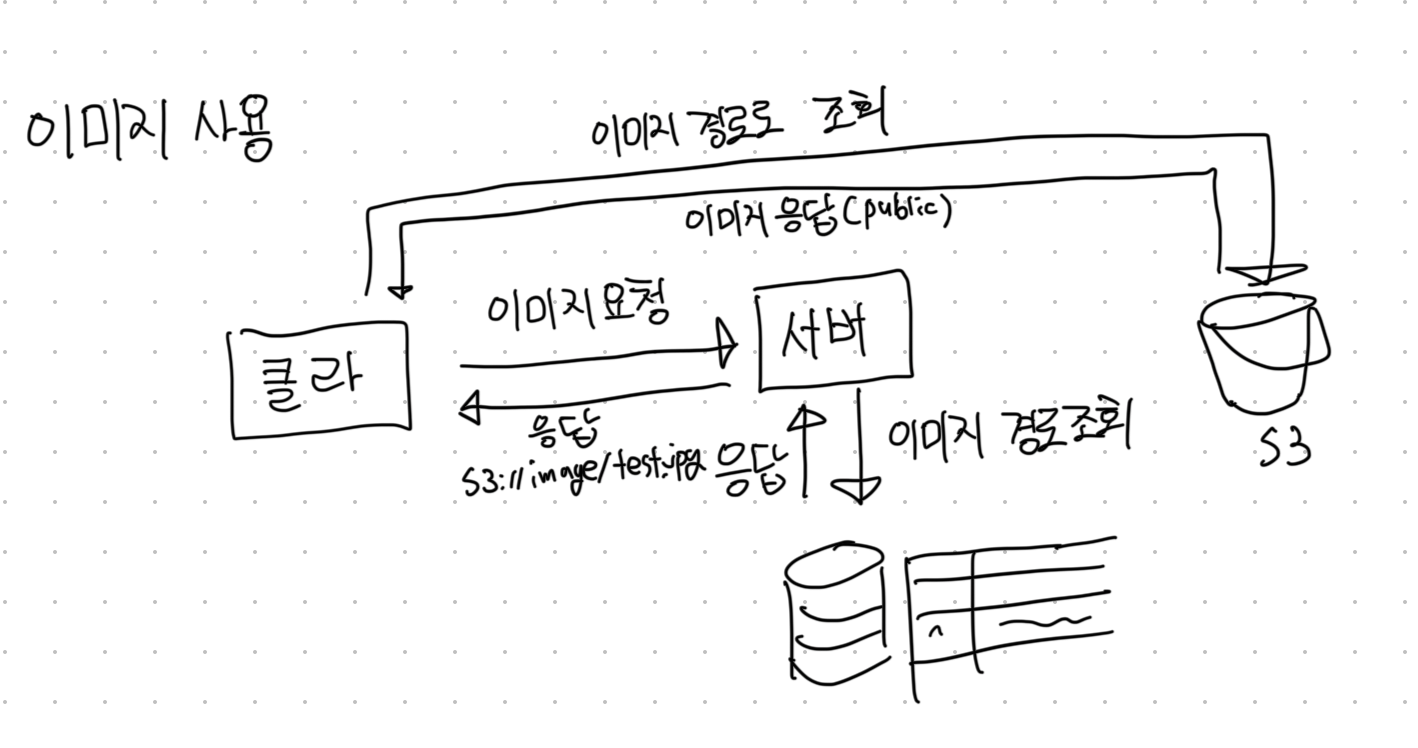 이미지를 저장하는 과정은, 클라에서 이미지를 업로드하면 우선 1. S3에 파일을 업로드 한다. 그 후 2. 업로드한 파일의 경로를 별도의 DB에 저장한다. 파일을 저장하지 않고 경로를 저장한다는 것이 중요하다.