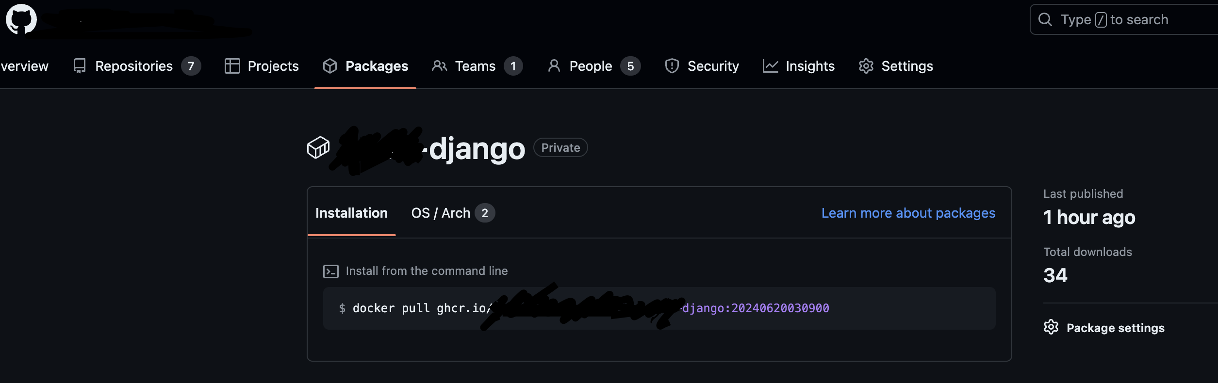 docker-compose.yaml파일에 이미 이미지 경로를 적어놨기 때문에 그냥 단순히 docker-compose pull만 하면 이미지 다운로드가 가능하다. 참고로 이전에 올린 이미지 경로는 github package 메뉴에서 확인 가능하다. package메뉴는 repo 쪽에 있는 게 아니라 더 상위에 있다는 것을 참고하자.